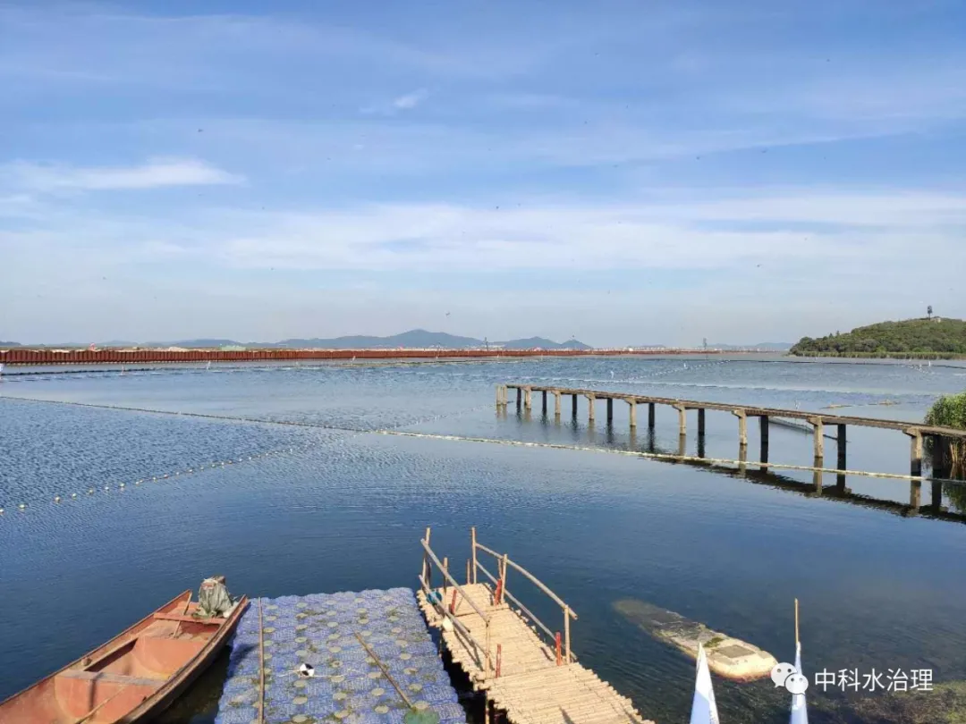 2018年7月,南京中科水治理股份有限公司再次中標太湖水域人工種植水生植物試驗項目。為更好地推動“梅梁湖項目”,貫徹和落實上級領導對本項目的指示,中科水治理以太湖沿岸線為基礎,以圍隔為隔水材料,將太湖水域隔離出封閉水域6萬㎡,并以仿生消浪、漁籪、生態網膜工程為輔助措施,進行太湖水域人工種植水生植物的試驗項目。
